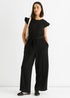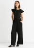 Gini London Black Stretch Texture Frill Elasticated Waist Jumpsuit