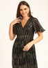 Gini London Black Stripe Foil Angel Sleeves Maxi Dress