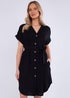 Gini London Black Utility Belted Oversized Viscose Shirt Dress