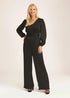 Learn moreStyle your look this season with our gorgeous Black V Neck Satin Belted Wide Leg Jumpsuit, with long sleeve and flattered shirred and belted waist. Pair with open-toe heels and statement jewellery for complete dressed up.