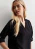 Learn moreThis Black V Neckline Button Up Oversized Top will be worn a lot! It's simply comfortable, cool with shiny shoulders and roll-up sleeves with button straps for a stylish look, and easy to go around in style. To finish the outfit, half-tuck your top into your figure-hugging leather leggings or a skirt.