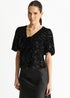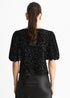 Gini London Black Velvet Sequin Bow Front Bubble Sleeve Top