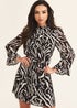 Gini London Black Zebra Frill Flared Sleeve Shift Dress