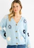 Gini London Blue 3D Contrast Flower Crochet Cardigan
