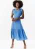 Gini London Blue Animal Print Ruched Sleeves Midi Dress