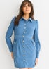 "Set the trend with our must-have Blue Corduroy Mini Shirt Dress. Crafted with soft corduroy material, this dress offers comfort and style. With its classic shirt dress design, it's perfect for any occasion. Add this dress to your collection for a fashionable and versatile piece."