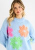 Gini London Blue Floral Crochet Chunky Knit Oversized Jumper