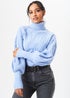 Introducing our Blue High Neck Knit Crop Jumper. This stylish and trendy jumper is designed to keep you warm while adding a touch of fashion to your wardrobe. The high neck design adds a touch of sophistication, while the crop length accentuates your figure. Stay warm and stylish with our Pink Knit Jumper.