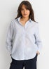 This stylish shirt is perfect for any occasion. Crafted from blue linen fabric and featuring an oversized stripe design, it adds a modern yet sophisticated touch to any wardrobe.