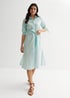 Gini London Blue Linen Tie Sleeves Midi Shirt Dress