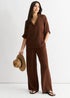 Gini London Brown Air Flow Oversized Shirt Top