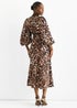 Gini London Brown Animal Lace Trim Satin Bias Midi Dress