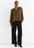 Gini London Brown Chiffon Animal Print Pleated Shift Shirt Blouse