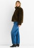 Gini London Brown Funnel Neck Animal Print Faux Fur Jacket