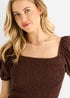 Gini London Brown Puff Sleeve Shirred Cotton Top