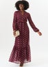 Gini London Burgandy Foil Print Ruffle Midi Dress