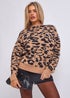 Gini London Camel Animal Print Crew Neck Knit Jumper