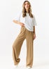 Gini London Camel Textured Elastic Waist Pull On Trousers