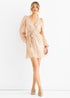 Gini London Champagne Sequin V Neck Belted Mini Dress