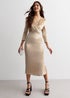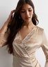 Gini London Champagne Velvet Wrap Top Skater Midi Dress