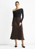 Slip into effortless elegance with our Chocolate Bias Maxi Skirt. Cut on the bias for a fluid, flattering drape that moves with you, this rich chocolate hue works as a versatile wardrobe staple—dress it up with heels and a silk camisole or keep it relaxed with trainers and an oversized tee. The maxi length offers understated sophistication while the bias construction creates a subtle sheen and graceful silhouette. Perfect for those who refuse to compromise between comfort and style.