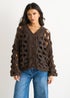 Gini London Chocolate Hollow Chunky Knit Cardigan