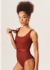 Gini London Chocolate Textured Round Neck Belted Swimsuit