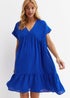 Gini London Cobalt Blue V-Neck Tiered Mini Smock Dress