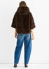 Gini London Coffee Hooded Chevron Faux Fur Cape Jacket