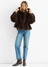 Gini London Black Horizontal Cut Fur Hooded Jacket