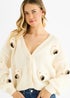 Gini London Cream 3D Contrast Teddy Crochet Cardigan