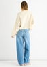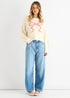 Gini London Cream Embossed Contrast Bow Short Knit Jumper