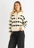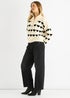 Gini London Cream Heart Zip Up Loose Fit Knit Jumper
