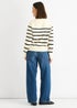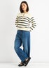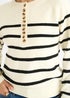 Gini London Cream Recycle Stripe Button Up Loose Fit Knit Jumper