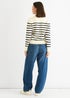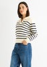 Gini London Cream Recycle Stripe V Neck Collar Knit Jumper