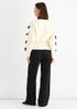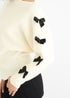 This bold cream jumper features a stylish slash neck design and a cute bow detail, making it a perfect addition to your wardrobe. The cropped length adds a touch of casual comfort, while the knit material keeps you warm and cozy. Elevate your style with this must-have piece.