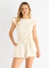 Gini London Cream Stretch Texture Frill Elasticated Waist Playsuit