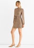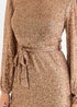 Gini London Gold High Neck Long Sleeves Belted Sequin Dress