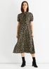 Gini London Green Animal Print Ruffle Neck Midi Dress