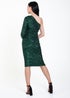 Gini London Green One Shoulder Draped Sequin Midi Dress