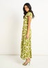 Gini London Green Petal Cuff Elasticated Waist Maxi Dress