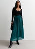This Green Pleated Belt Detail Midi Skirt is expertly designed for a midi-length cut and crafted from floaty fabric for a lightweight feel with belt details. Its contemporary silhouette is flattering and timeless, perfect for any occasion.