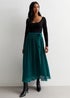 Gini London Green Pleated Belt Detail Midi Skirt
