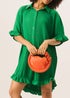 Gini London Green Plisse Frill Detail Oversized Shirt Dress