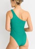 Gini London Green Textured Twist Front One Shoulder Swimsuit