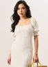 Gini London Ivory Shirred Sleeves Shift Midi Dress