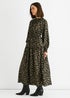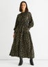 Gini London Khaki Animal Print Shirred High Neck Maxi Dress