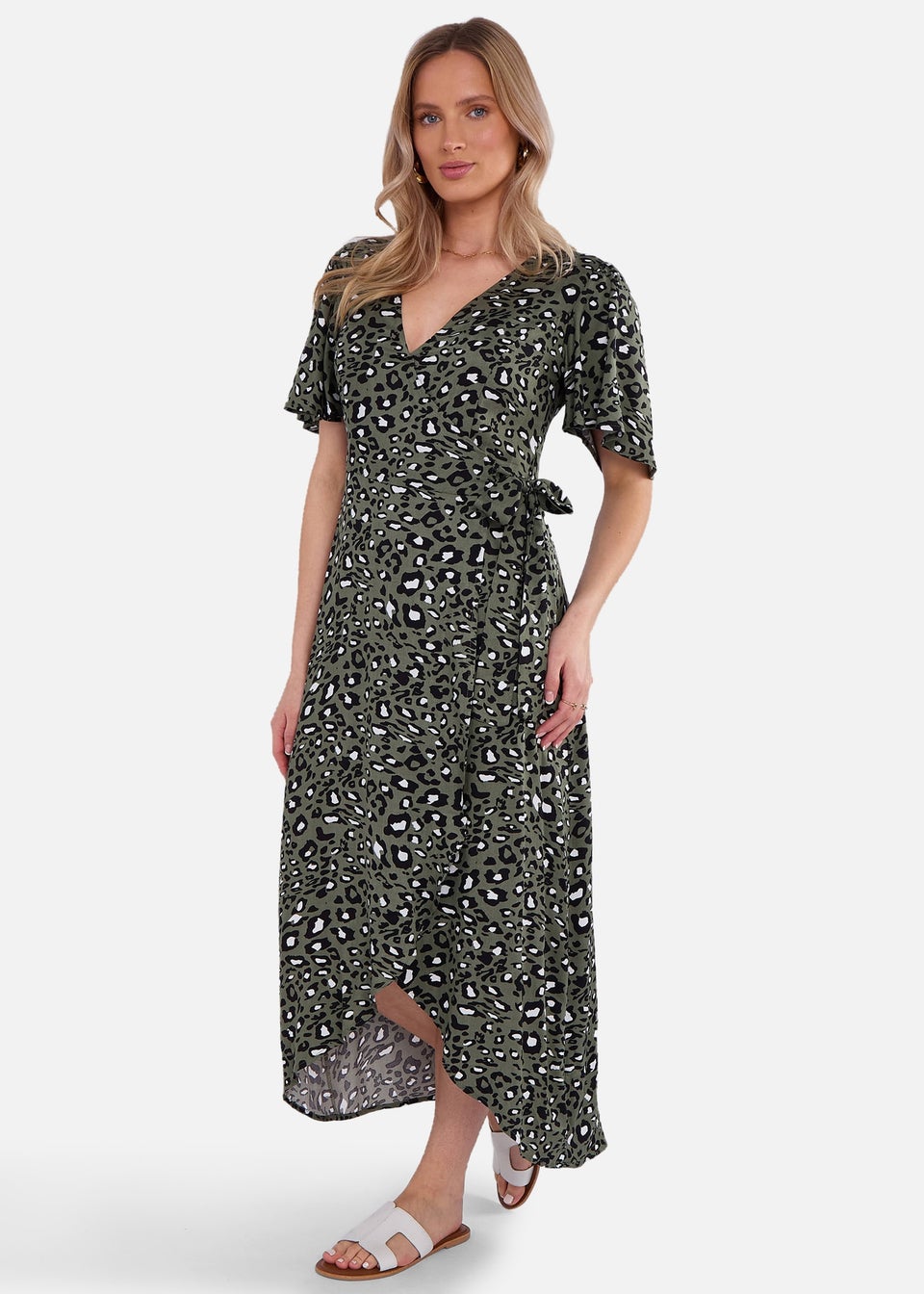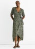 Gini London Khaki Animal Print Viscose Wrap Midi Dress