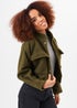 Gini London Khaki Boucle Wool Elasticated Waist Cropped Jacket