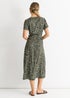 Gini London Khaki Short Sleeve Animal Print Wrap Front Midi Dress